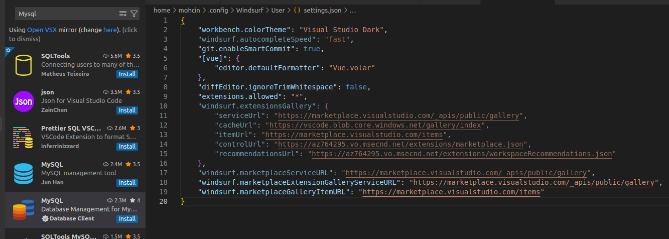 "windsurf.marketplaceServiceURL": "https://marketplace.visualstudio.com/_apis/public/gallery",